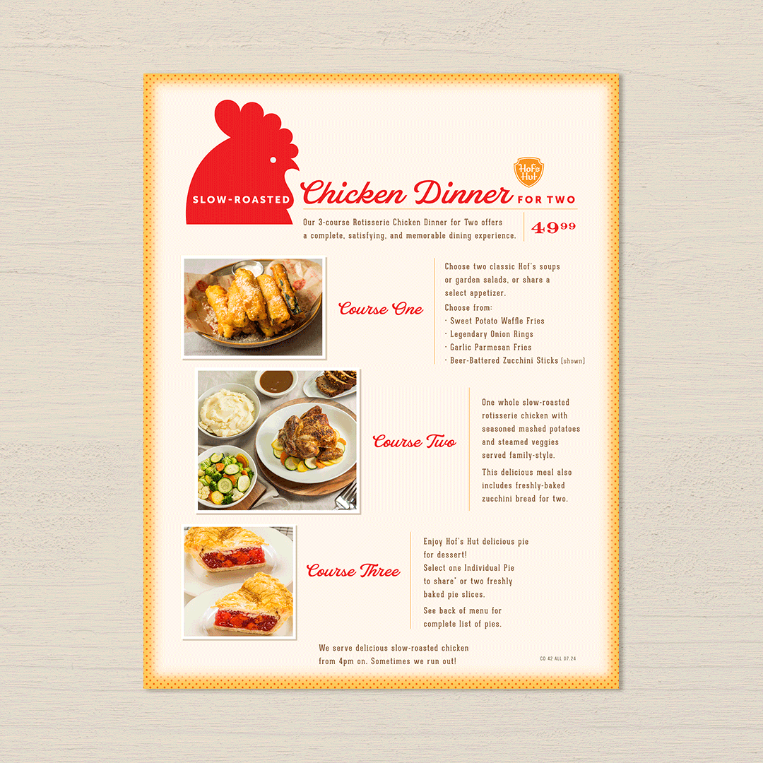 Hof’s Hut Limited Time Menu - Rotisserie Chicken Dinner for Two - Initial Design Options